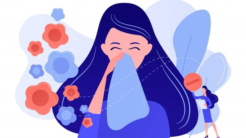 Reacción exagerada del sistema inmunológico causa sintomas típicos de alergias: ojos llorosos con picazón, estornudos, tos y congestión nasal. Histamina es el químico responsable de estos sintomas después de exponerse a factores ambientales precipitantes.
