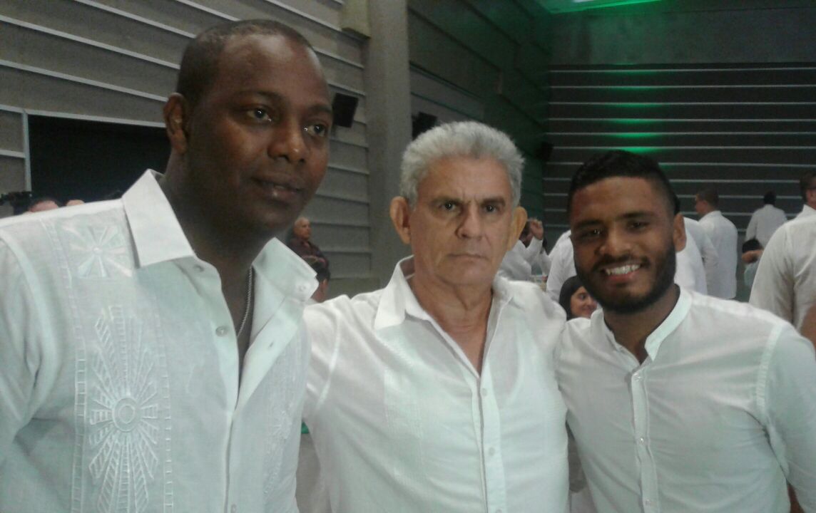 Édgar Renteria, Francisco Figueroa Turcios y Álex Cuvajante. Los dos deportistas protagonista de la premiación Acord.