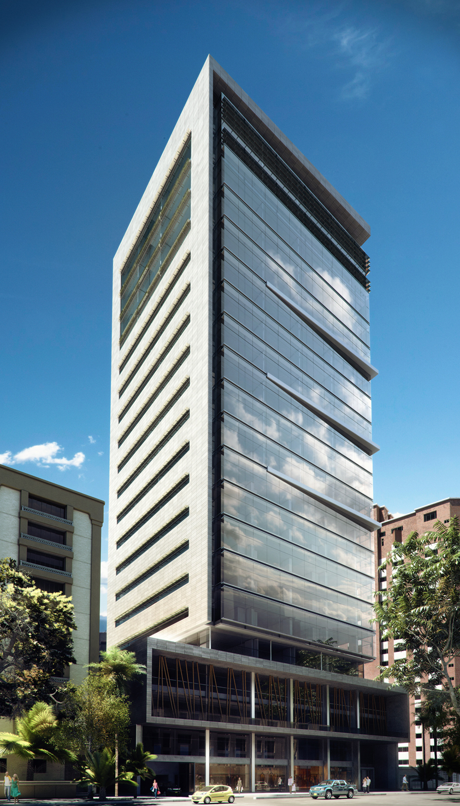 Con 32 mil metros cuadrados construidos, 16 mil de ellos a oficinas, y desarrollado en un terreno de 2.250 m2, el edificio evoluciona al ritmo de las tendencias corporativas del momento que imponen amplios espacios de interacción y servicio aquí representados en 1.300 metros cuadrados de zonas comunes, un piso corporativo de más de 1.500 m2 dotado de áreas de soporte como salas de juntas, auditorios, comedor para empleados, gimnasio y terrazas, las zonas comunes de cada piso contaran con servicio de baño y el proyecto brindará una oferta de depósitos para archivo.