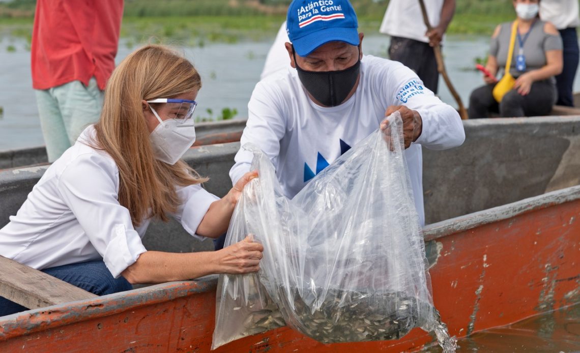 “Una de las primeras acciones que me pidieron los pescadores, antes de llegar la pandemia, fue el repoblamiento de peces en los cuerpos de agua del departamento como un medio para la seguridad alimentaria y la generación de ingresos con la comercialización del pescado. Inmediatamente creamos y pusimos en marcha el Plan Pescao para repoblar con 12 millones de alevinos el Embalse del Guájaro, las Ciénagas de Luruaco, de Tocagua y Malambo”, indicó la Gobernadora.