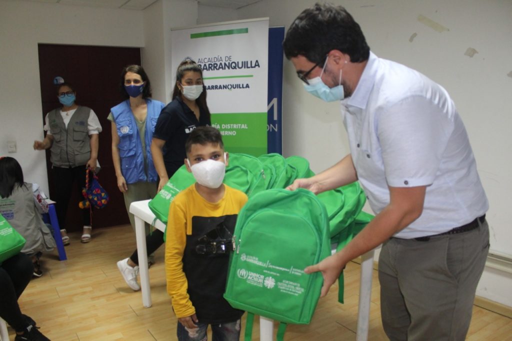 Con la entrega de kits educativos, guías pedagógicas y kits de aseo a niños hijos de migrantes venezolanos, continúa el compromiso de la Alcaldía de Barranquilla, a través de la Secretaría de Gobierno, y el apoyo de las organizaciones como Acnur, OIM y Pastoral Social, con esta población asentada en Barranquilla.