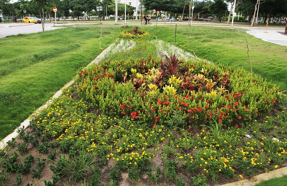 Una de las partes más vistosas del nuevo espacio público barranquillero son los hermosos jardines que lo rodean.