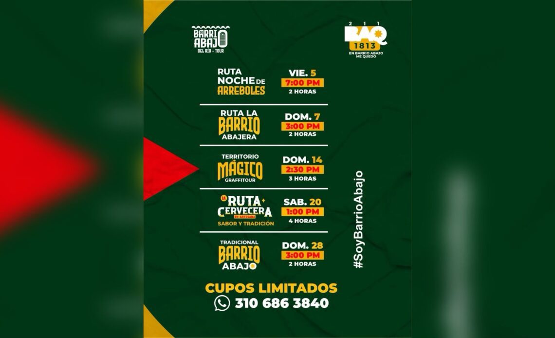Todos los recorridos tienen cupos limitados y se deben apartar a través del WhatsApp 310 6863840 o en redes sociales @barrioabajotour.