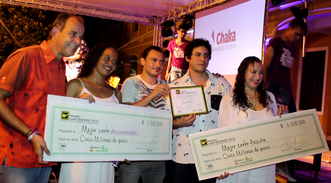 Juan Jaramillo, Secretario de Cultura de Barranquilla junto a los ganadores del Premio Chip Dorado 2016.