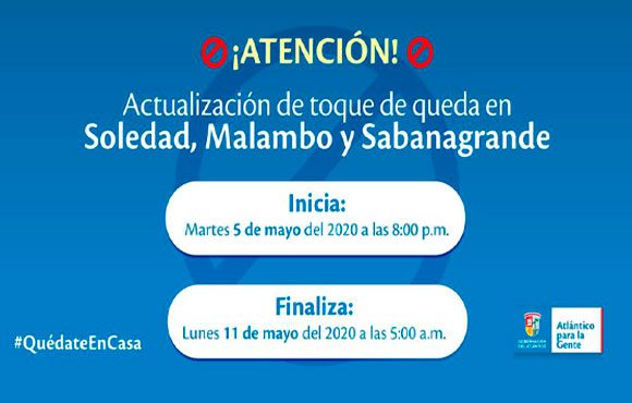 En reunión virtual con los alcaldes de Soledad, Rodolfo Ucrós; Malambo, Rummenigge Monsalve; Sabanagrande, Gustavo de la Rosa y la gobernadora del Atlántico, Elsa Noguera, y frente al incremento de los casos de contagio en estos municipios, se tomó la decisión de implementar toque de queda a partir del día de hoy a las ocho de la noche.