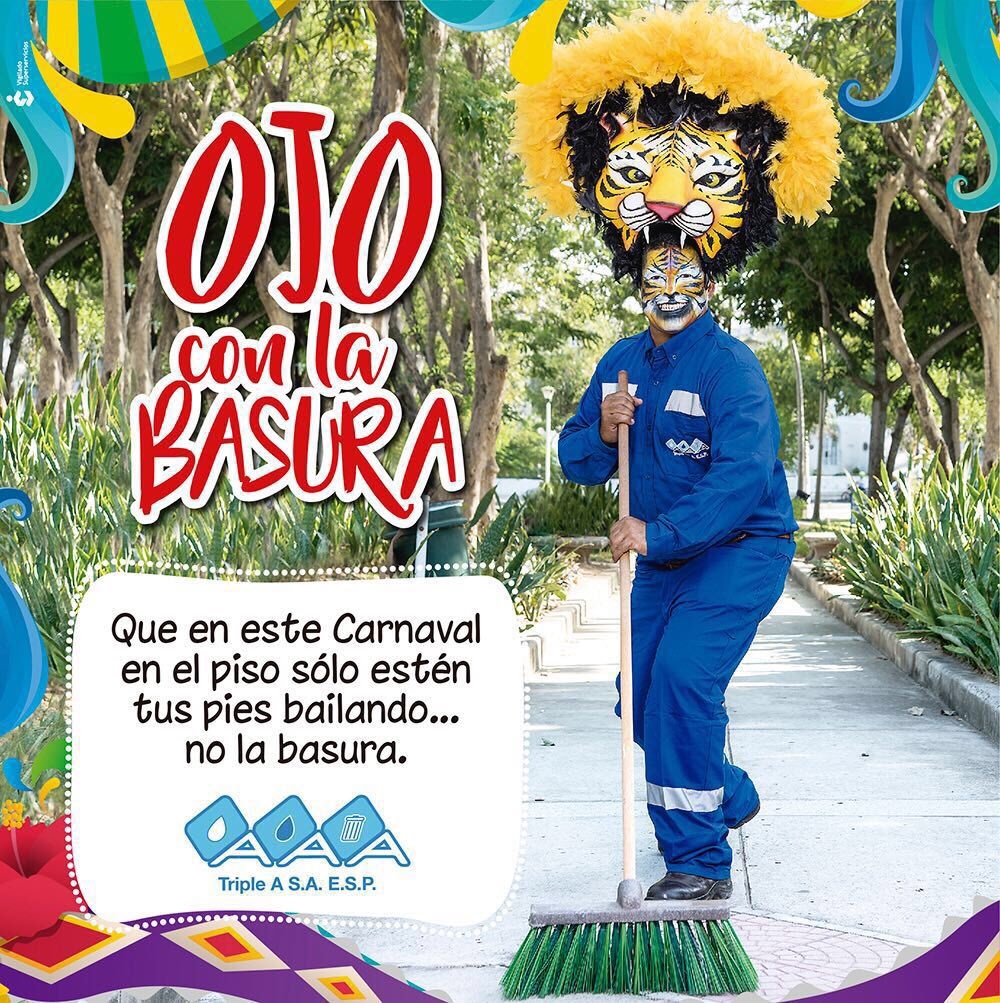 Dando la bienvenida a la prensa el gerente de la mencionada empresa comunica a los presentes que “desde inicios del mes de enero, Triple A adelanta su campaña ciudadana ‘Ojo con la basura’, invitando a todos a comprometerse en la reducción de los residuos que se arrojan en los escenarios del carnaval”.