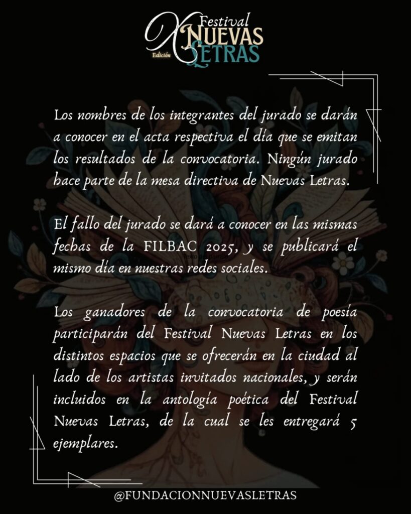 El fallo del jurado se dará a conocer en las mismas fechas de la FILBAC 2025, y se publicará el mismo día en nuestras redes sociales.