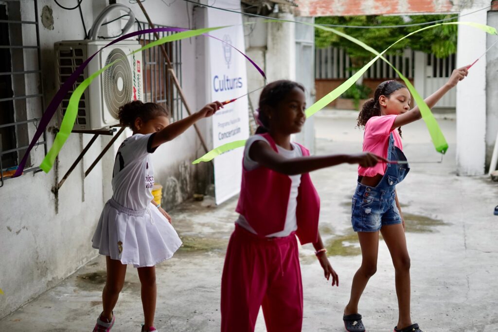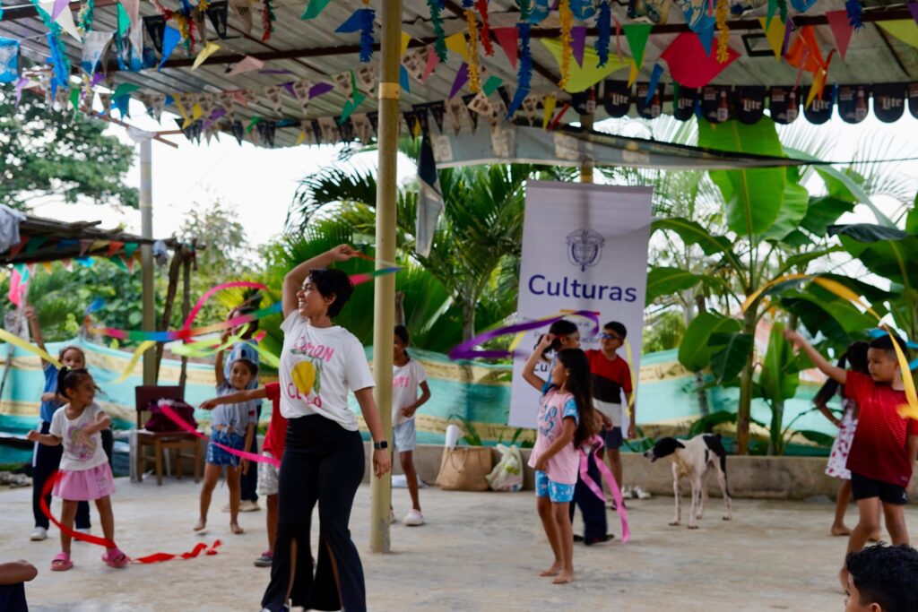 En los talleres de danza se trabajó la cumbia, el mapalé, el son de negro y la puya. Para muchos niños fue la primera vez que se acercaban a estos ritmos desde el movimiento. Las profesoras, parte de la compañía aliada Top Dance, llevaron la enseñanza con un tono lúdico que hizo del aprendizaje un juego compartido.