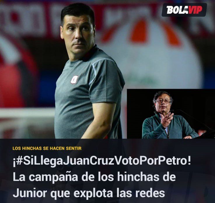 La inconformidad de la afición juniorista se ha hecho sentir en las redes sociales al conocer el cambio de Juan Cruz Reales por Gustavo Costas. El común denominador de los conceptos de los aficionados es que Junior merece un director técnico de categoría. los hinchas junioristas amenazaron a la familia Char sino cambian la decisión le pasan factura en el campo político quitándole el respaldo a Alex a su aspiración a la presidencia. ¡ Si llega Juan Cruz voto por Petro! Es la campaña de los hinchas que explotan las redes sociales.