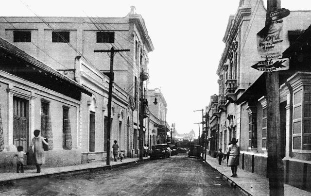 La acera de la izquierda quedaba el inmueble de la primera sede de El Heraldo en 1933. Era entonces el Callejón Abello, luego Paseo Colón, hasta cuando todas esas construcciones fueron demolidas para ampliar la vía y convertirla en lo que es hoy, el Paseo Bolívar