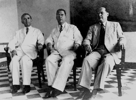 Los tres ilustres pilares de la fundación del principal diario del Caribe colombiano, de izquierda a derecha: Juan B. Fern+andez Ortega –director-fundador–, Alberto Pumarejo Vengoechea y Luis Eduardo Manotas Llinás.