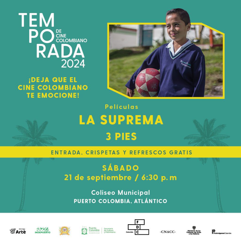 Además, este mismo día se realizará la función principal con la proyección de La Suprema, y el cortometraje 3 pies, en el Coliseo Municipal, a partir de las 6:30 p.m. Esta es una función especial para asistir en compañía de familia y amigos, ya que además se brindarán crispetas y bebidas gratis a los asistentes.