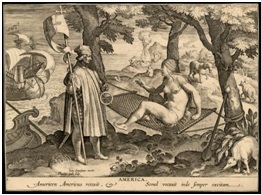 Según el mito de la etnia Koguipara la creación “Primero estaba el mar”, pero los pueblos del centro y del sur americano podrían gritar ¡y la hamaca también! Es suficiente con ver lo que plasma el pintor Giovanni Stradano (quien nunca visitó a América) en su taller de Florencia, en el grabado alegórico que hace parte de un conjunto de representaciones referidas al descubrimiento, año 1576, titulado Américo Vespucio despertando a América. En el grabado se observa al europeo pisando el Nuevo Mundo frente a una mujer desnuda, la joven América (o AbyaYala), que reposa en una hamaca.