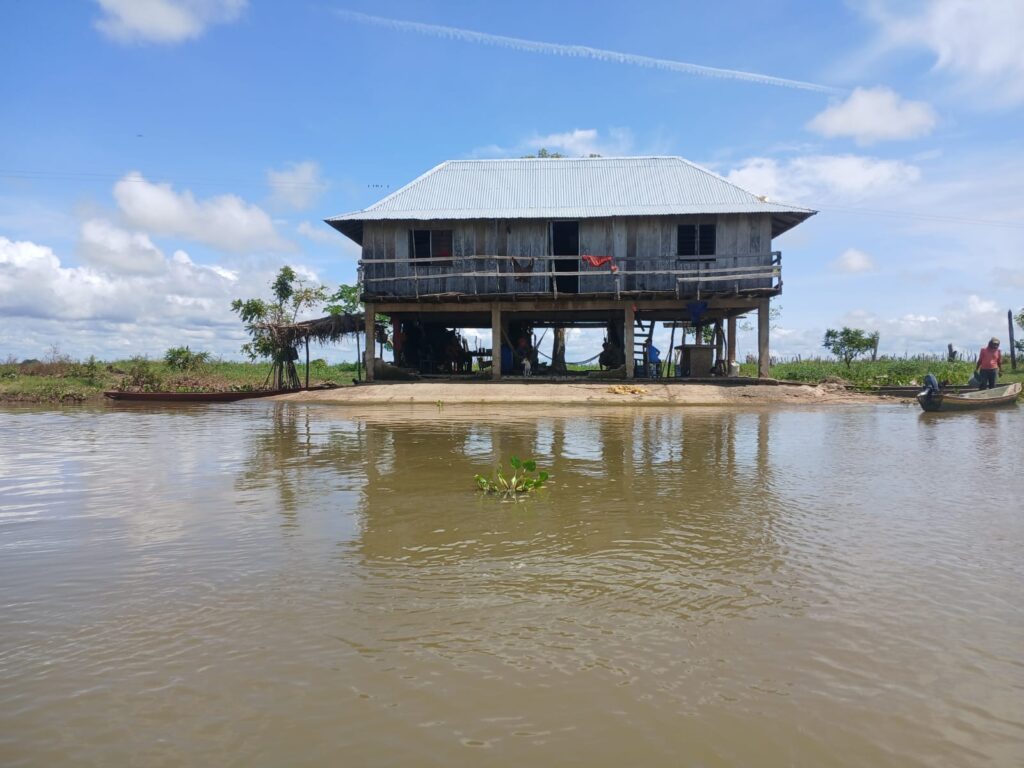 Cruzamos el Caño Guamalito y nos adentramos en el caudal del río San Jorge. La mano izquierda de Arturo se alza de nuevo para señalar una imponente casa, elevada sobre doce pilotes de cemento ruñidos por el agua. Tiene paredes de tablas curtidas por el tiempo y unas barandas casi caídas en el segundo piso, donde cuelgan un par de suéteres rojos secándose al sol. Abajo hay un salón abierto donde tres hombres descansan en hamacas, acechados por el sol del mediodía que se refleja furioso en el espejo del río.