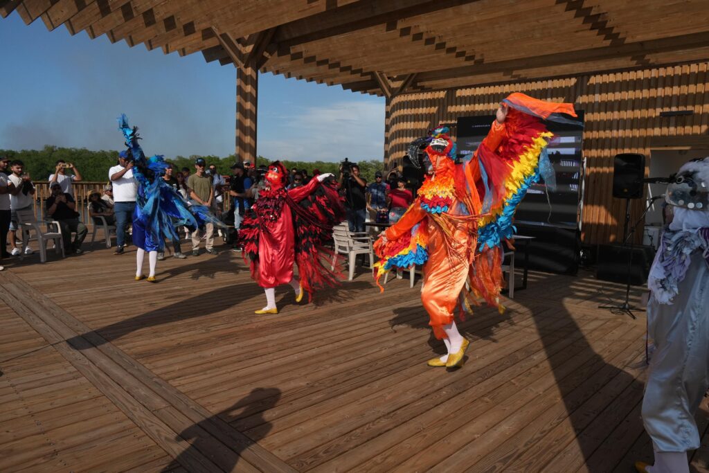 En la jornada de avistamiento y previo a la firma estuvo presente la danza de relación ‘Pájaros Identidad’, liderada por Naty Meléndez, que atesora la tradición oral con la que el Carnaval de Barranquilla fue declarado Patrimonio Cultural de la Humanidad por la UNESCO cuya inspiración en la fauna tropical del Caribe colombiano es muestra de cómo la biodiversidad se preserva y trasciende a las expresiones culturales de Barranquilla y su tradición.