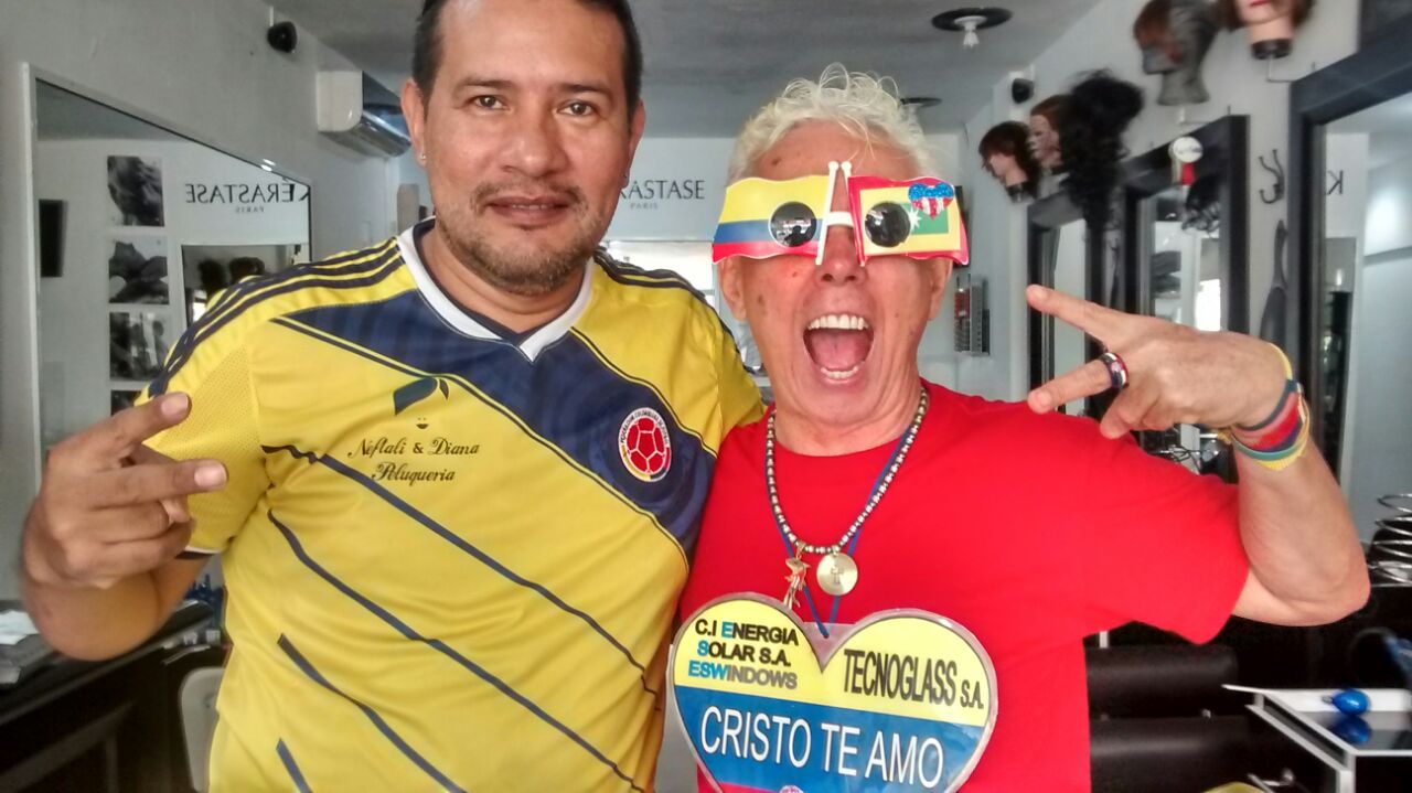 Gustavo Llanos, que encarna al personaje de El Cole, brota alegría por todos sus poros y durante las cinco horas que duró la elaboración del look se le pudo advertir la ansiedad para que llegue la hora cero para el partido clásico entre Colombia y Ecuador.