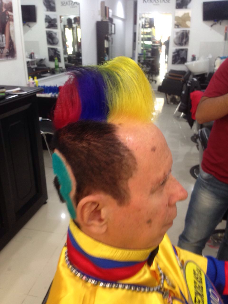 Cinco horas demoró Neftalí en plasmar el diseño de la dimensión f3: comenzó a las diez de la mañana y culminó a las cuatro de la tarde del domingo 27 de marzo. Obviamente que cada paso lleva sus respectivos protocolos. El primer paso fue hacerle el corte de cabello para facilitar la elaboración del diseño F3. El segundo paso es plasmar con un marcador el dibujo del F3. El tercer paso es cortar el cabello hasta que quede rapado el espacio de la cabeza para que sobresalga el diseño. El cuarto paso es tinturar el cabello de negro. Y finalmente, tinturar el copete con los colores de la bandera de Colombia: amarillo, azul y rojo.