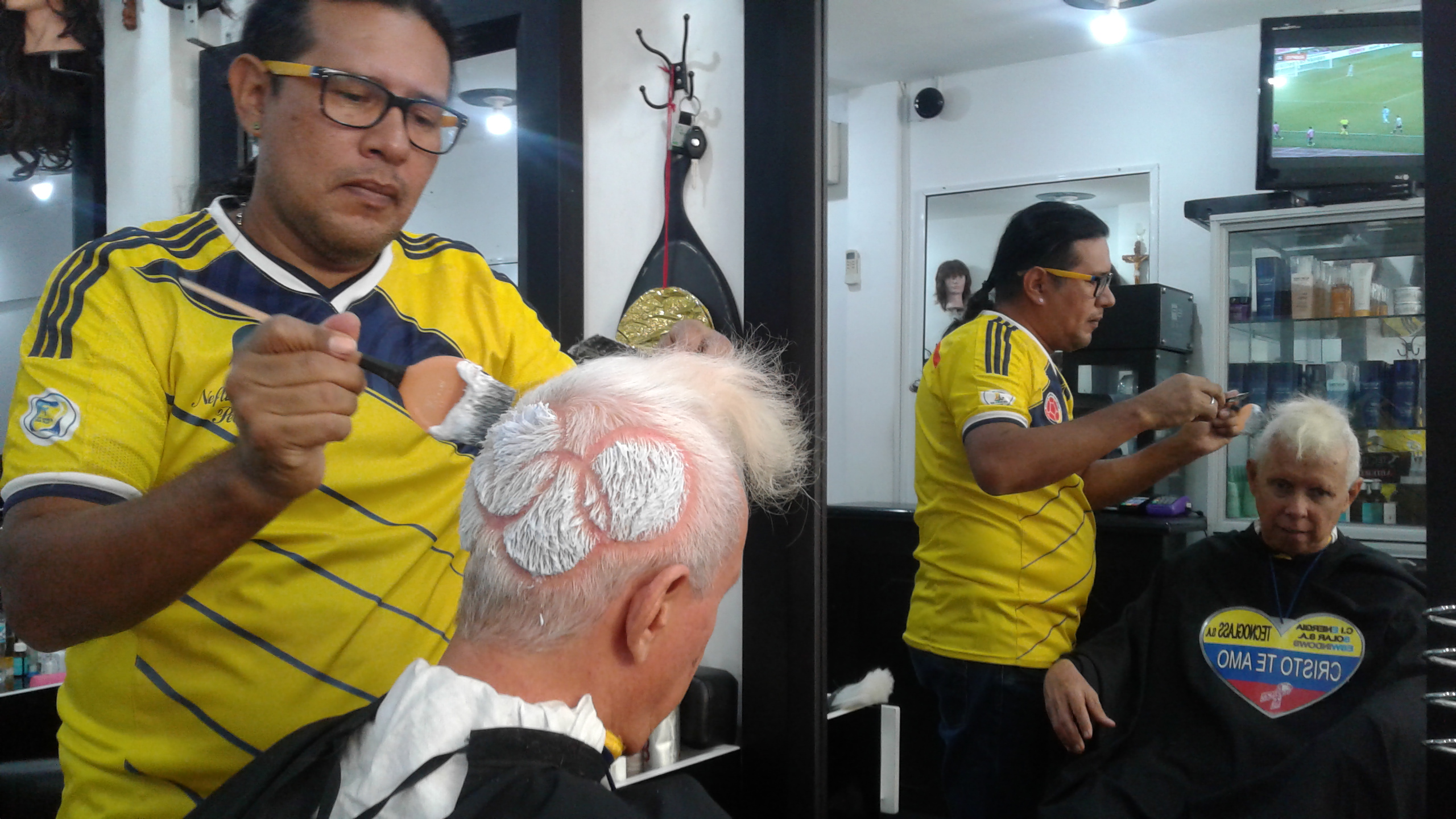Con mucha dedicación Neftalí Díaz elaboró el corte de cabello a El Cole, alusivo a la paz en Colombia y a los Juegos Olímpicos que lucirá en los partidos de Colombia ante Venezuela y Brasil.
