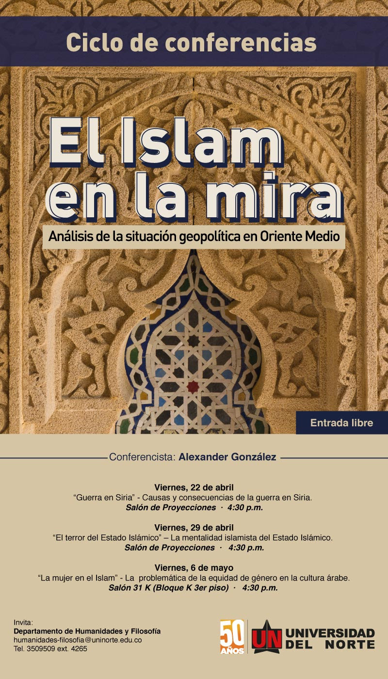 En continuas ocasiones la ignorancia hace que pequemos en señalar a otros sin atrevernos a conocer un poco más su realidad o, como lo entendí luego, en pensar que lo que pasa al otro lado del mundo, si no nos afecta directamente, no tiene relación con nosotros. Este viernes en la Universidad del Norte se dio inicio a una serie de conferencias tituladas “El Islam en la mira” que tendrá continuación los próximos dos viernes del calendario, es decir el 29 de abril y el 6 de mayo.