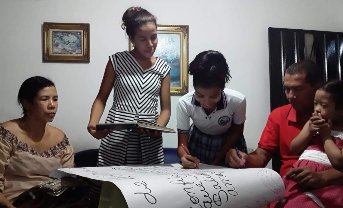 La institución y con la colaboración de 3 padres de familia, acudientes y/o cuidadores de nuestros estudiantes, residentes en cada una de las veredas donde están ubicadas las sedes: La Aguada, La Bonga y Caimital; cumpliendo con los protocolos de bioseguridad y con un listado donde se encuentran relacionados los nombres y las ubicaciones dentro de las veredas de nuestros alumnos, hacen la distribución personalizada de las guías; la cual está diseñada para ser desarrollada en 15 días.