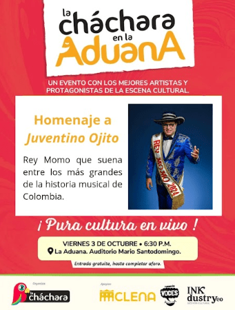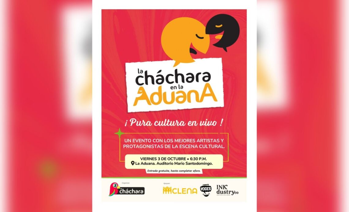 Este viernes 3 de octubre, a las 6:30 p.m., el Auditorio Mario Santo Domingo de La Aduana será escenario de La Cháchara en La Aduana, un exitoso evento de arte en vivo, con exponentes destacados de la música, el teatro, las artes plásticas y la poesía.