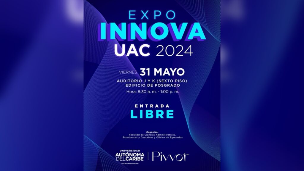 La universidad Autónoma del Caribe abre la invitación a que participen a la feria de emprendimiento e innovación EXPO INNOVA UAC 2024-01 el próximo viernes 31 de Mayo de 2024 en los auditorios del edificio de Posgrado (sexto piso) de la universidad