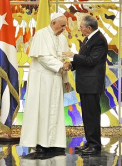 El expresidente cubano por su parte obsequió al papa el libro Fidel y la religión, la entrevista que el teólogo brasileño Frei Betto le hizo a Fidel Castro en 1985, con la dedicatoria: «Para el papa Francisco en ocasión de su fraternal visita a Cuba. Con admiración y respeto del pueblo cubano».