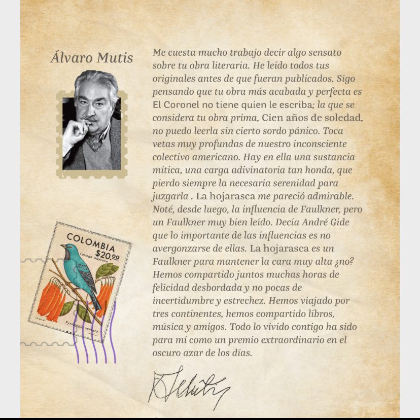 “Mis únicos amigos son anteriores a Cien años de soledad. A ellos les contesto unas cipotes de cartas y me leo de cabo a rabo las que me mandan, pero las otras ni las abro. Las rompo sin abrirlas”, comentó en una entrevista concedida a El Tiempo en diciembre de 1968.