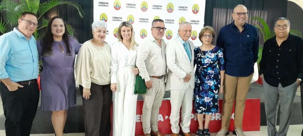 Gomez Oñoro con su familia y el rector y Decano de comunicaciones de la Universidad Autónoma del Caribe