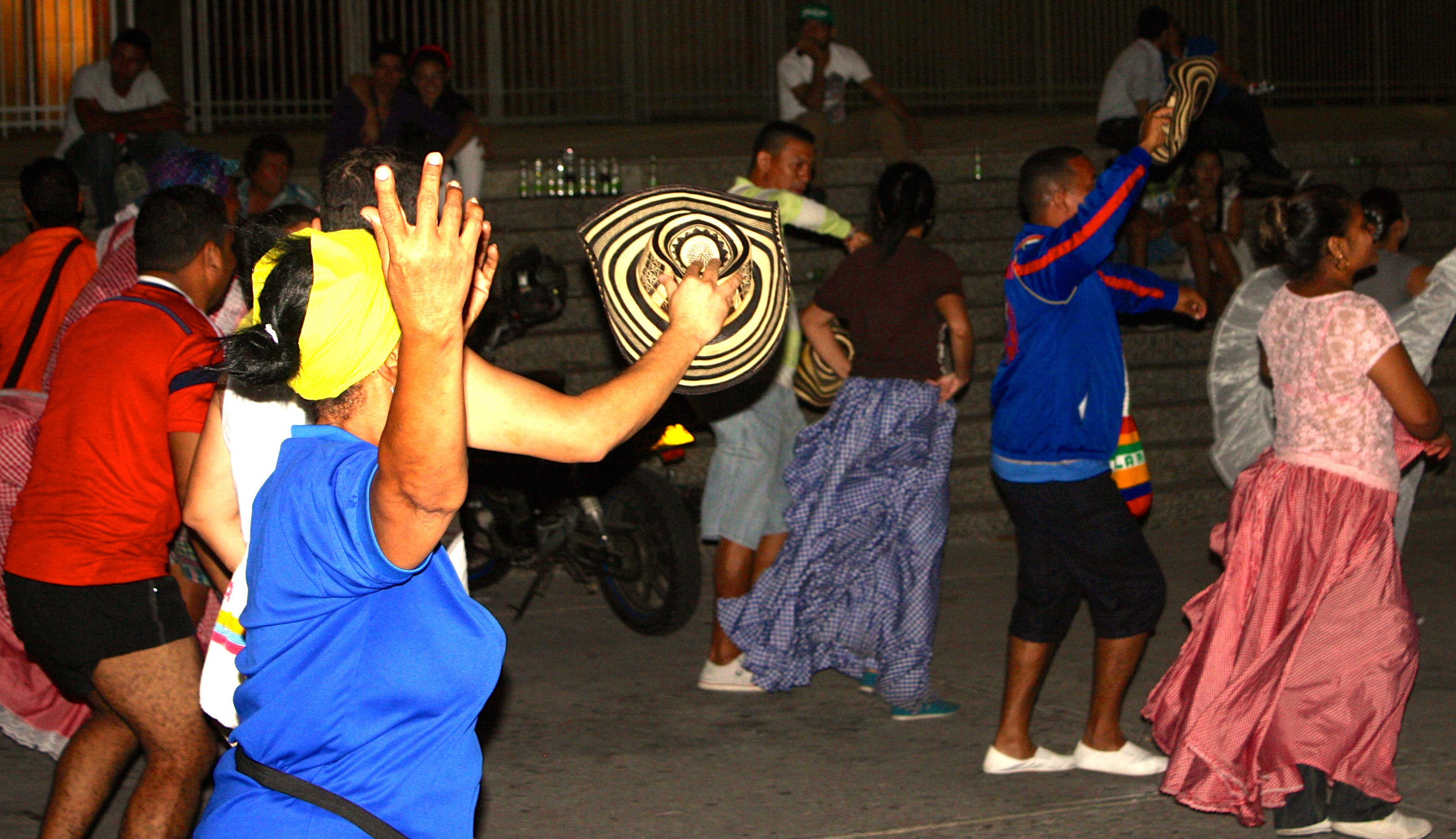 Juanita, “La Cumbiambera de Barrio Abajo” como le llaman sus vecinos, aquella mujer que representa mucho menos de los 62 años que se endilga picando el ojo, responsable de abrir todas las ruedas de Cumbia que se realizan periódicamente durante el año, desde cada primero de enero, en el corazón de la cuna de Esthercita Forero, llega de última al ensayo de La Revoltosa, frente a las escalinatas de La Catedral Metropolitana donde se reúnen para practicar al son de su majestad, la cumbia. No llevó pollera, llegó con un leggins negro y una camiseta azul, tenis y una pañoleta amarilla sobre el lado izquierdo de su cabeza simulando un tocado de flores.