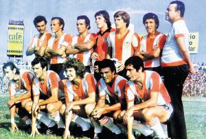 Junior 1977: Dulio Miranda, Jopa Berdugo, Rafa Reyes, Juan Carlos Delménico, Julio Comesaña, óscar Bolaño. Abajo. Camilo Aguilar, Eduardo Solari, César Lorea, Alfredo Arango y ´ La Bruja´Verón.