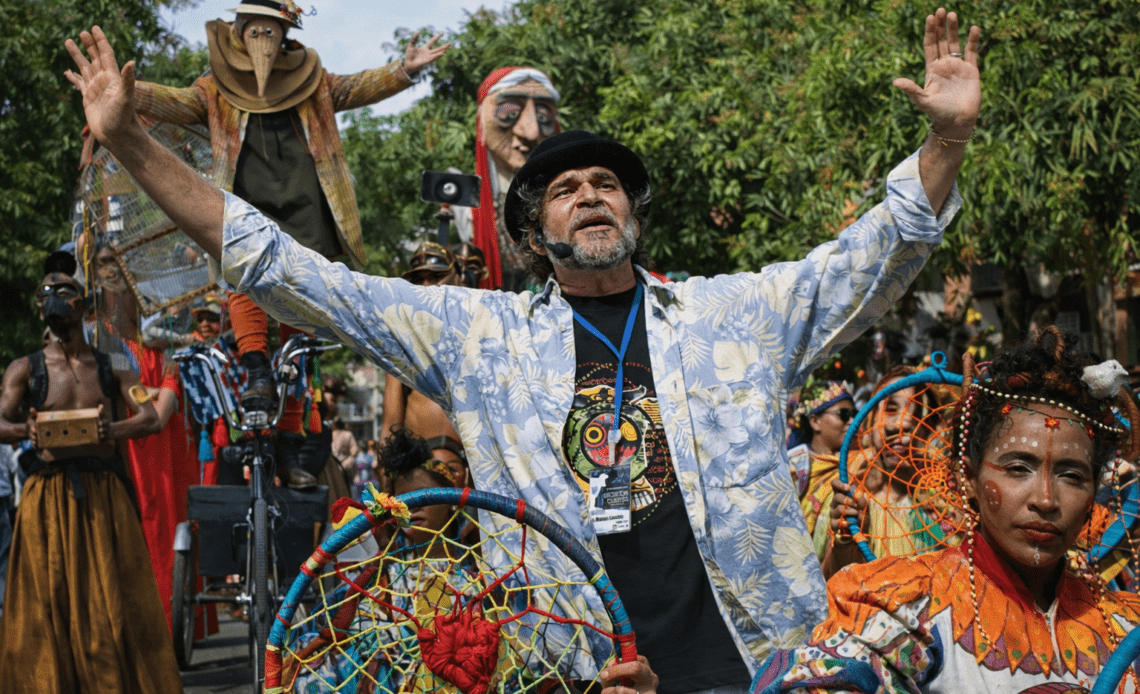La presentación se llevó a cabo el jueves 2 de abril a las 3:00 p.m. en el Parque de Los Hippies, donde 50 artistas en escena —entre músicos, actores, actrices y bailarines provenientes de Barranquilla, Cali, Medellín y Bogotá— dieron vida a la puesta en escena Parábasis de un sueño, en un acto cargado de emoción, belleza y memoria.