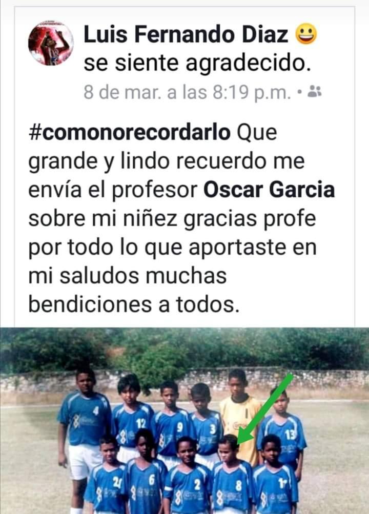 Catorce años después Oscar García recuerda las características de Lucho Díaz el primer día que lo vio jugar. » Me impresionó por la habilidad y destreza con el balón de ese pequeño que era muy escurridizo» puntualiza García sobre las capacidades de Lucho cuando apenas tenía doce años.