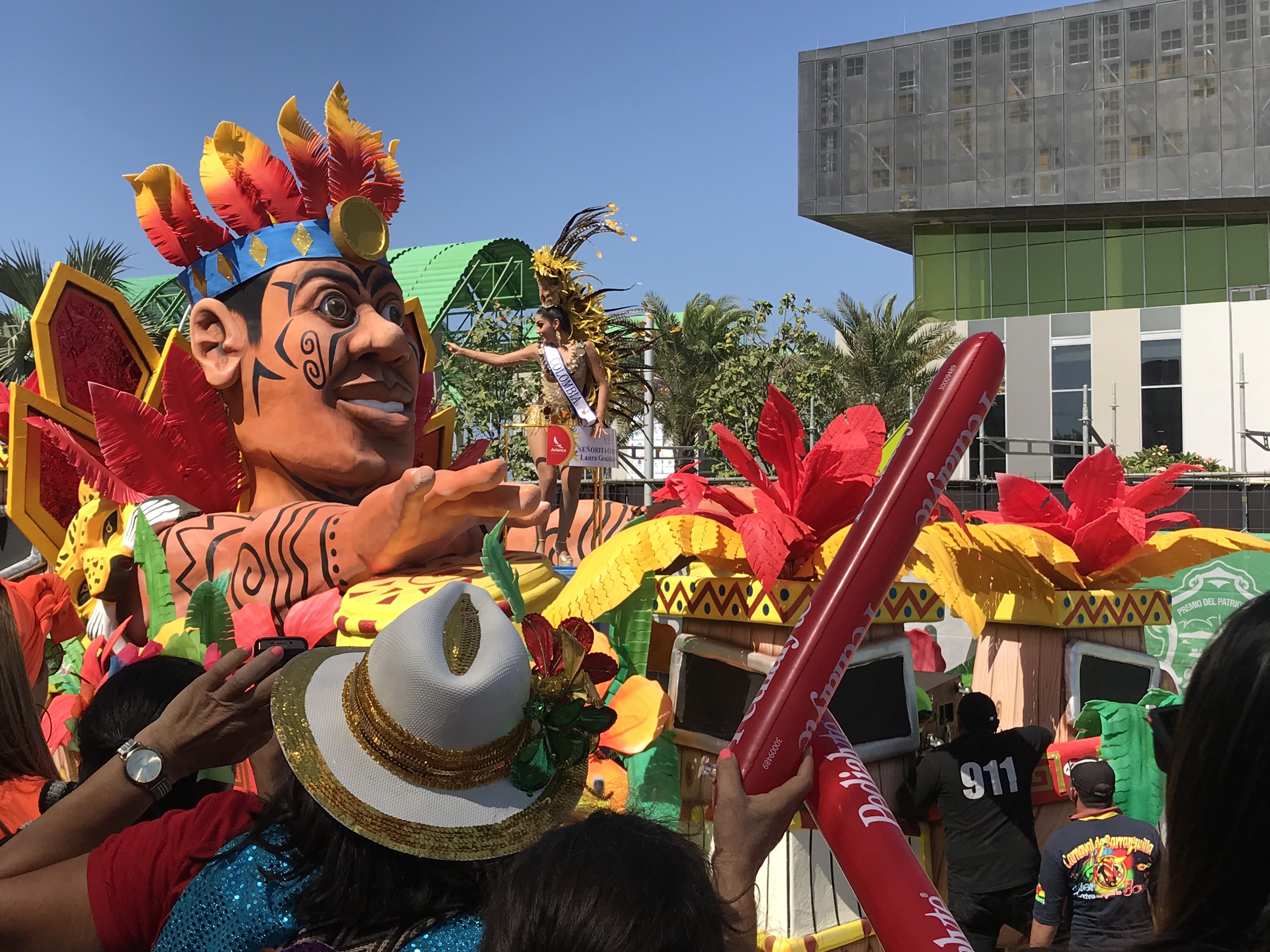 Excelentemente construidas, las combinaciones de colores hacen resaltar nuestro bello cielo, los personajes que estaban sobre ellas eran incluso más despampanantes que las propias carrozas, con sonrisa de oreja a oreja y con bailes exóticos, todo con un certero dominio del cuerpo, porque al estar en ese espacio reducido deben ingeniárselas para verse fluidos y además debían sortear el movimiento del vehículo.