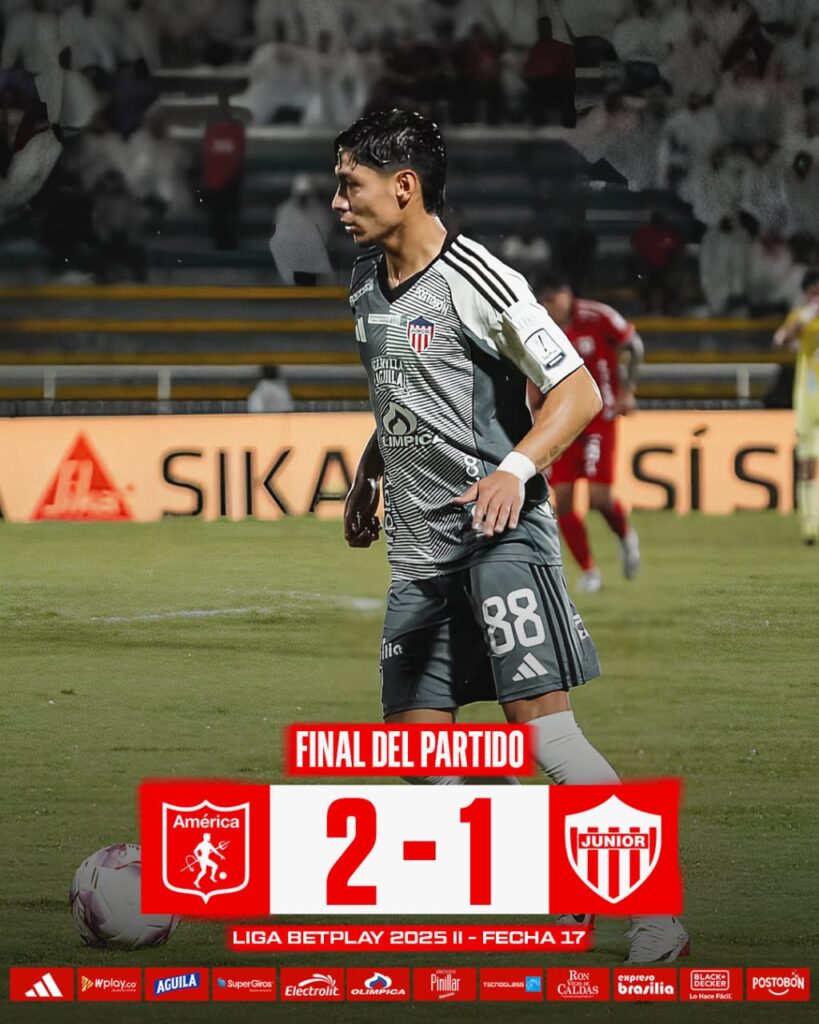 Otra vez se quedó Junior ante América, como en la sudamericana, como en la copa, se impusieron teniéndonos de hijos. Preocupa mucho el nivel del equipo de cara al cierre del semestre y los cuadrangulares, los tiburones se han vuelto expertos en revivir muertos, ya pasó contra Millonarios a principio de semestre, ahora a América dejándolo con claras chances de clasificación, y ahora sigue Santa Fe, equipo que está en la pelea para entrar a los cuadrangulares. Esperemos cual va a ser el desempeño del equipo esta semana cuando enfrente a los cardenales y a Fortaleza por las fechas 18 y 19.