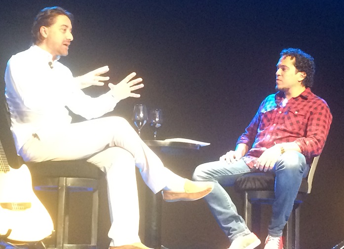 Carlos Palacio, mejor conocido artísticamente como Pala, conversa con Roberto Camargo Barros en el escenario del teatro ‘José Consuegra Higgins’.