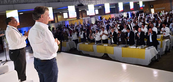 De pie y ovacionando al Presidente Juan Manuel Santos, los gobernadores del país le agradecieron sus esfuerzos y persistencia para lograr el Acuerdo Definitivo con la guerrilla de las Farc.