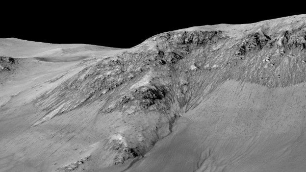 Las venas oscuras que aparecen en algunas laderas de Marte pueden tener cientos de metros de extensión. “Marte no es el planeta seco y árido que pensábamos en el pasado”, dijo Jim Green, director de ciencia planetaria de la Nasa.