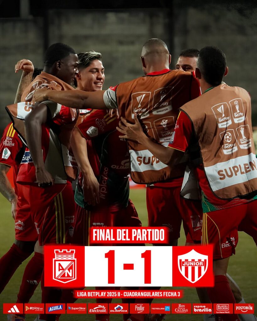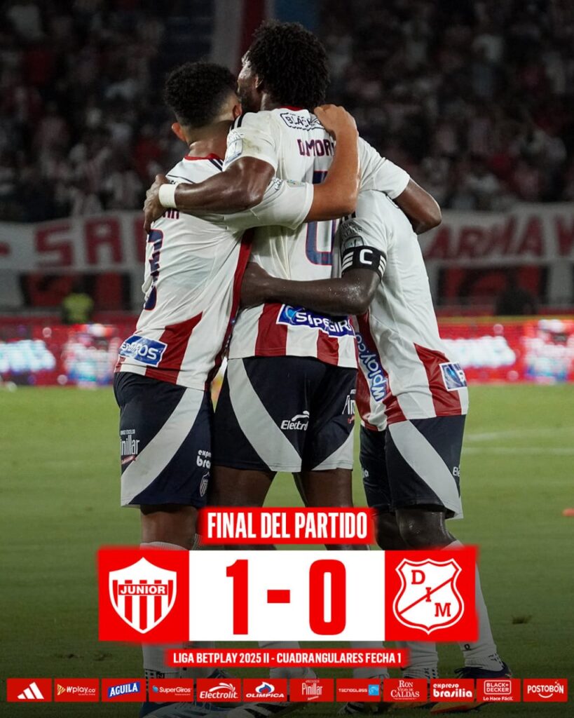 El primer juego se llevó a cabo hace una semana en el estadio Metropolitano ante el Deportivo Independiente Medellín, líder de la fase todos contra todos y con un gran presente a nivel futbolístico. Los dirigidos por Alfredo Arias se plantaron muy bien en la cancha, conteniendo la ofensiva del poderoso y aprovechando las ventajas que daban en defensa, atacando los espacios con José Enamorado, jugador diferencial en el equipo. Didier Moreno aprovechó un rebote en el área y marcó el único gol del partido, dándole los primeros 3 puntos del cuadrangular y haciendo notar a todos que Junior no venía a pasear en los cuadrangulares.
