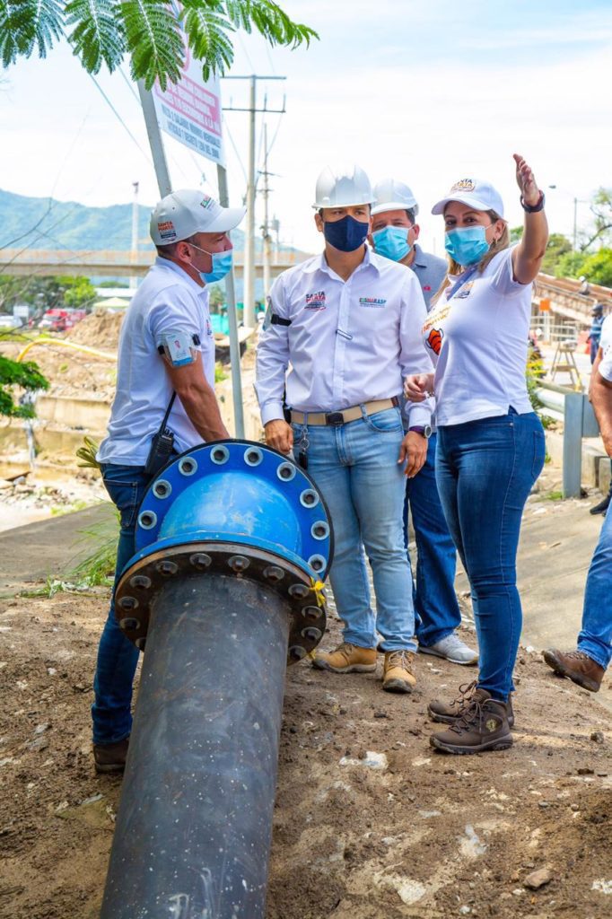 «Hicimos inspección a la línea de conducción Sena-Troncal-La Lucha y hemos encontrado un avance del 86%; esto quiere decir que durante el mes de noviembre estaremos poniendo al servicio de la ciudad esta obra, que va a beneficiar a 150.000 habitantes, optimizando así la continuidad del servicio, ampliando el esquema de distribución y vamos obviamente a continuar trabajando a través de la Essmar en todos estos proyectos de corto y mediano plazo para continuar mejorando el servicio de agua en Santa Marta”, expresó la Alcaldesa.