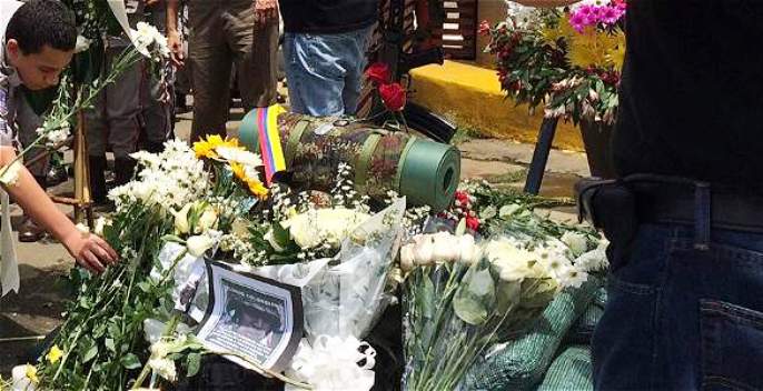Familiares y amigos de los dos suboficiales y los nueve soldados muertos llegaron a las afueras de esa guarnición militar a poner margaritas, geranios, girasoles y rosas, y armaron una especie de trinchera diminuta, en la que instalaron unas botas y una réplica de fusil.