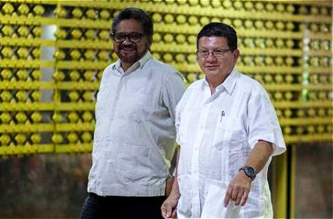 Iván Márques y Pablo Catatumbo, jefes de las Farc, muy tiesos y muy majos se pasean por La Habana.[/caption]
