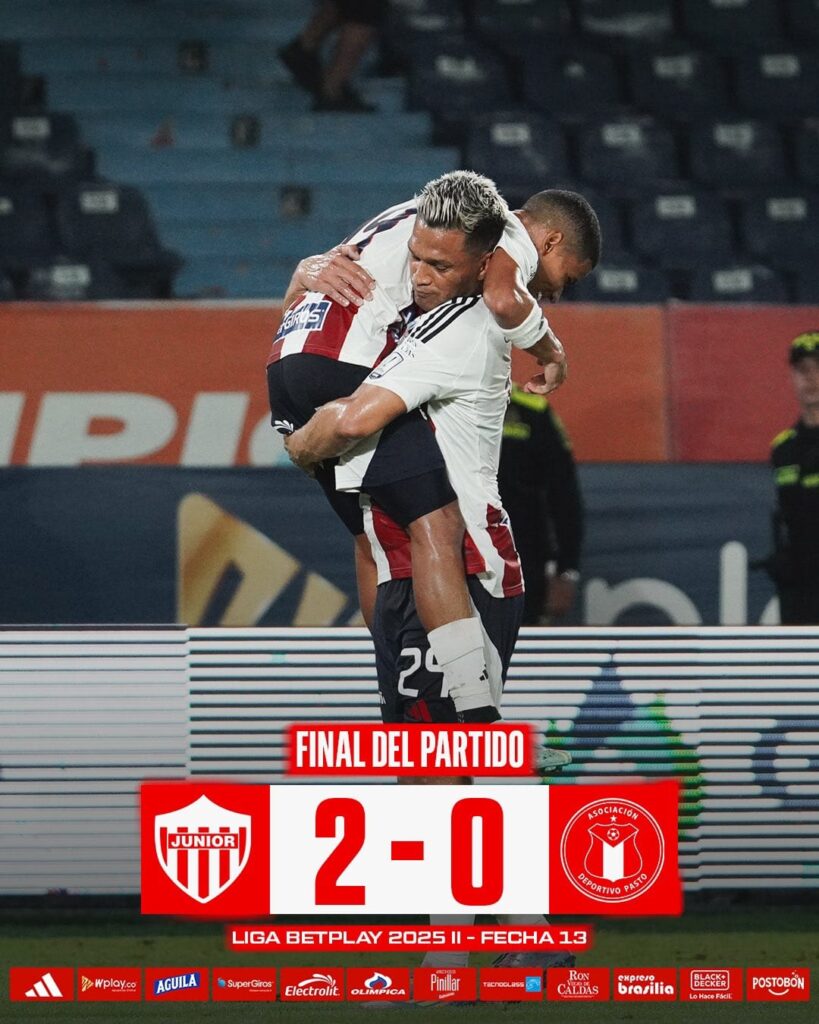 Después de 4 partidos sin conocer la victoria y de no sostener resultados, Junior sumó 3 puntos en un partido con pocas afugias. Deportivo Pasto llegó a jugar a Barranquilla enfrentando problemas en su rendimiento futbolístico y por problemas extradeportivos, a lo que el cuadro tiburón agudizó luego de ganar 2-0 en el juego correspondiente a la fecha 13 de la liga colombiana.
