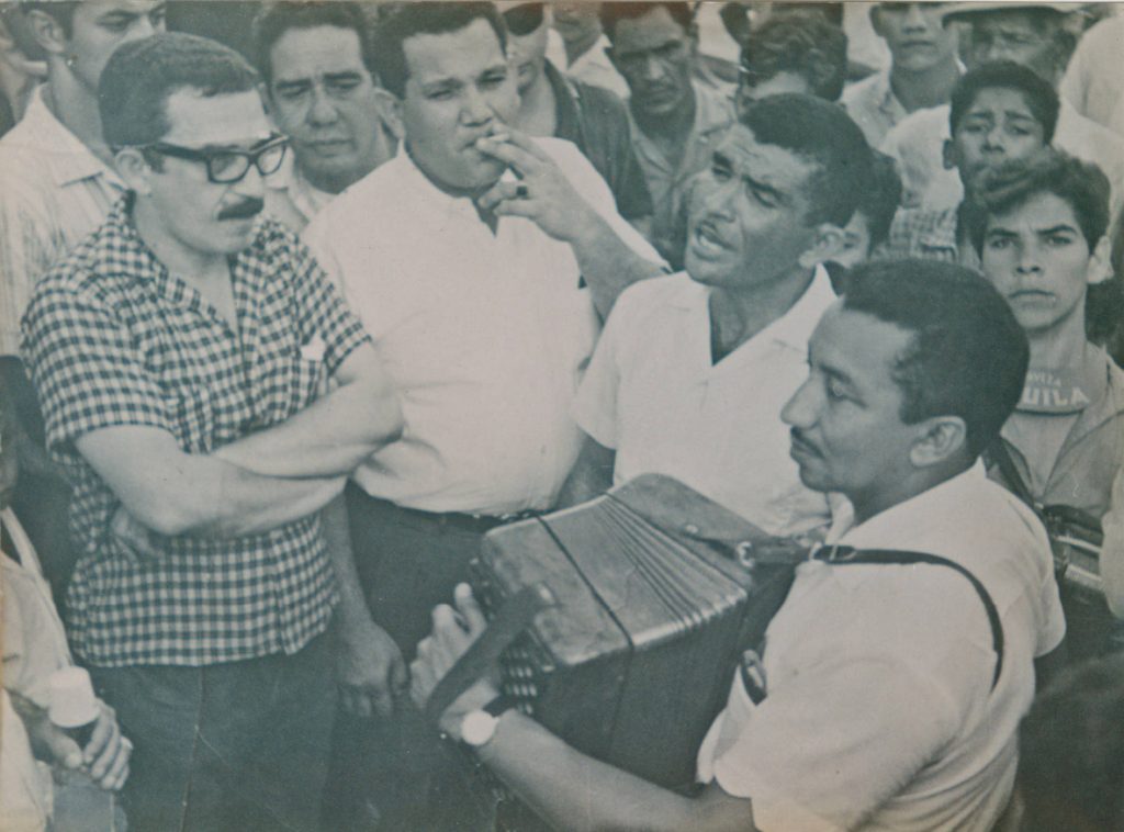 Es el escritor Manuel Zapata Olivella, médico rural en La Paz, Cesar, es quien lleva a García Márquez por los pueblos del Magdalena Grande y le presenta a los juglares y a los músicos de acordeón, entre ellos a quien sería su compadre y amigo de toda la vida: Rafael Escalona. Este primer viaje exploratorio luego el mismo García Márquez lo emprenderá también con Escalona por La Guajira, cuando vendía enciclopedias por la región. Y más tarde con Álvaro Cepeda Samudio, en los años sesenta, cuando entre los dos planearon crear un primer festival de música de acordeón en un viaje por Aracataca y Valledupar, germen del actual festival de la Leyenda Vallenata.