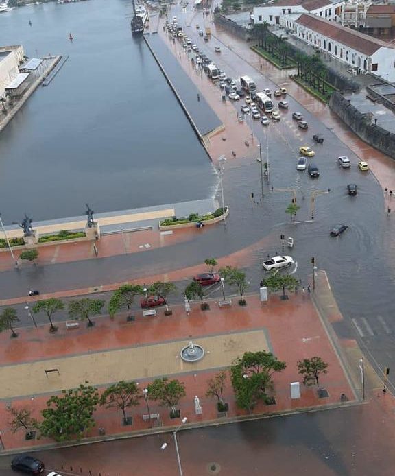Calles de Cartagena convertidas en piscina. Aparecen en plena calle canoas y hasta yates.