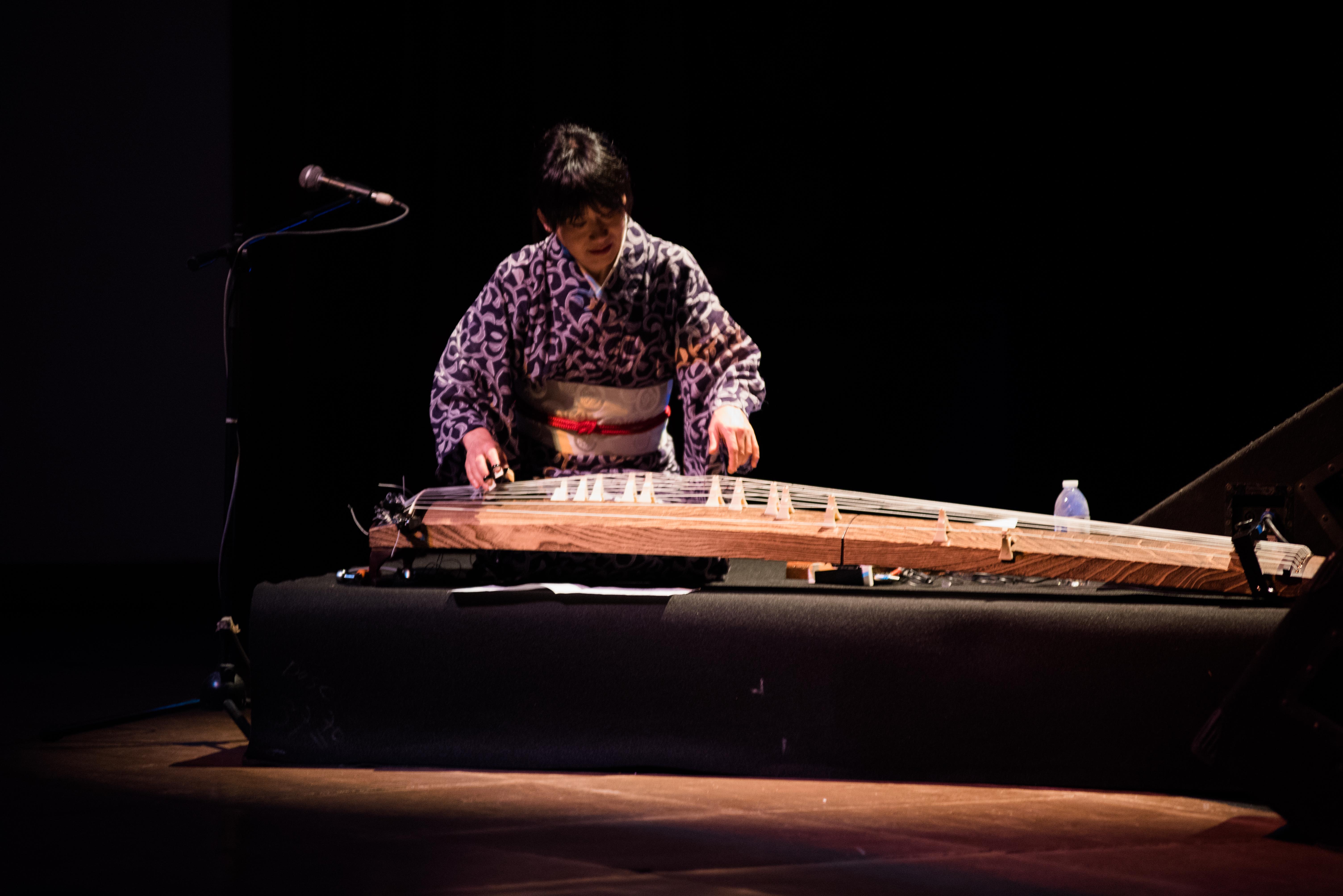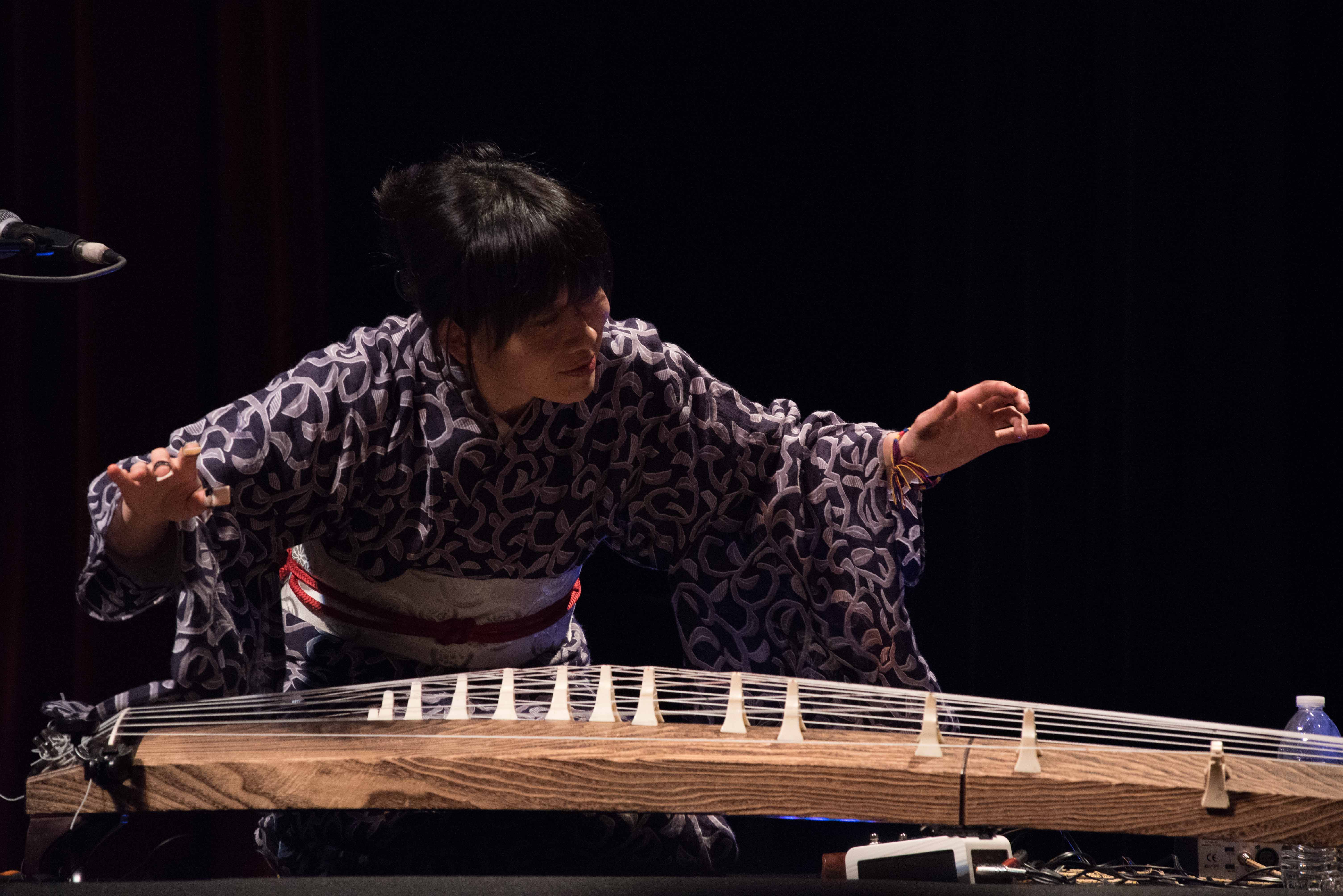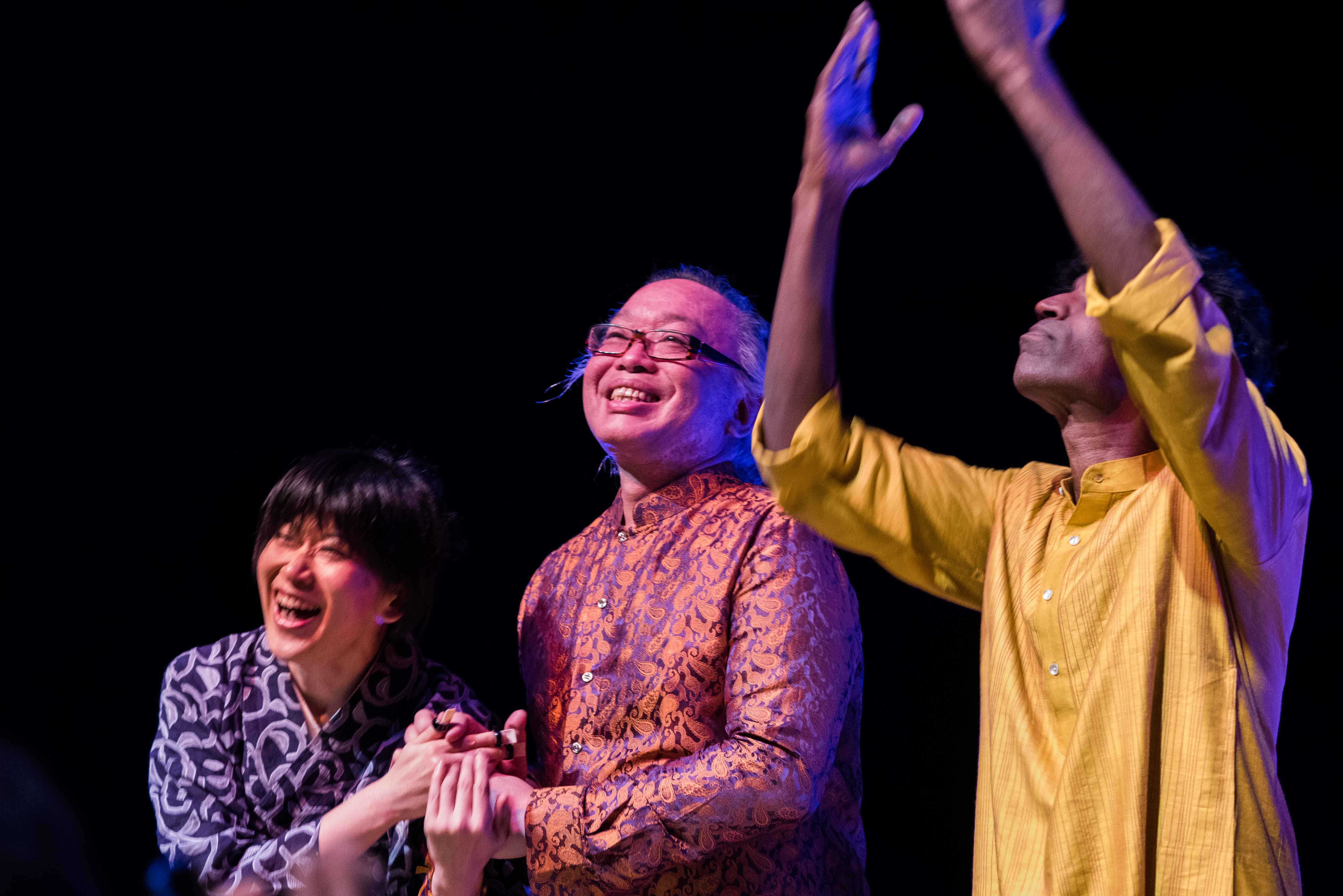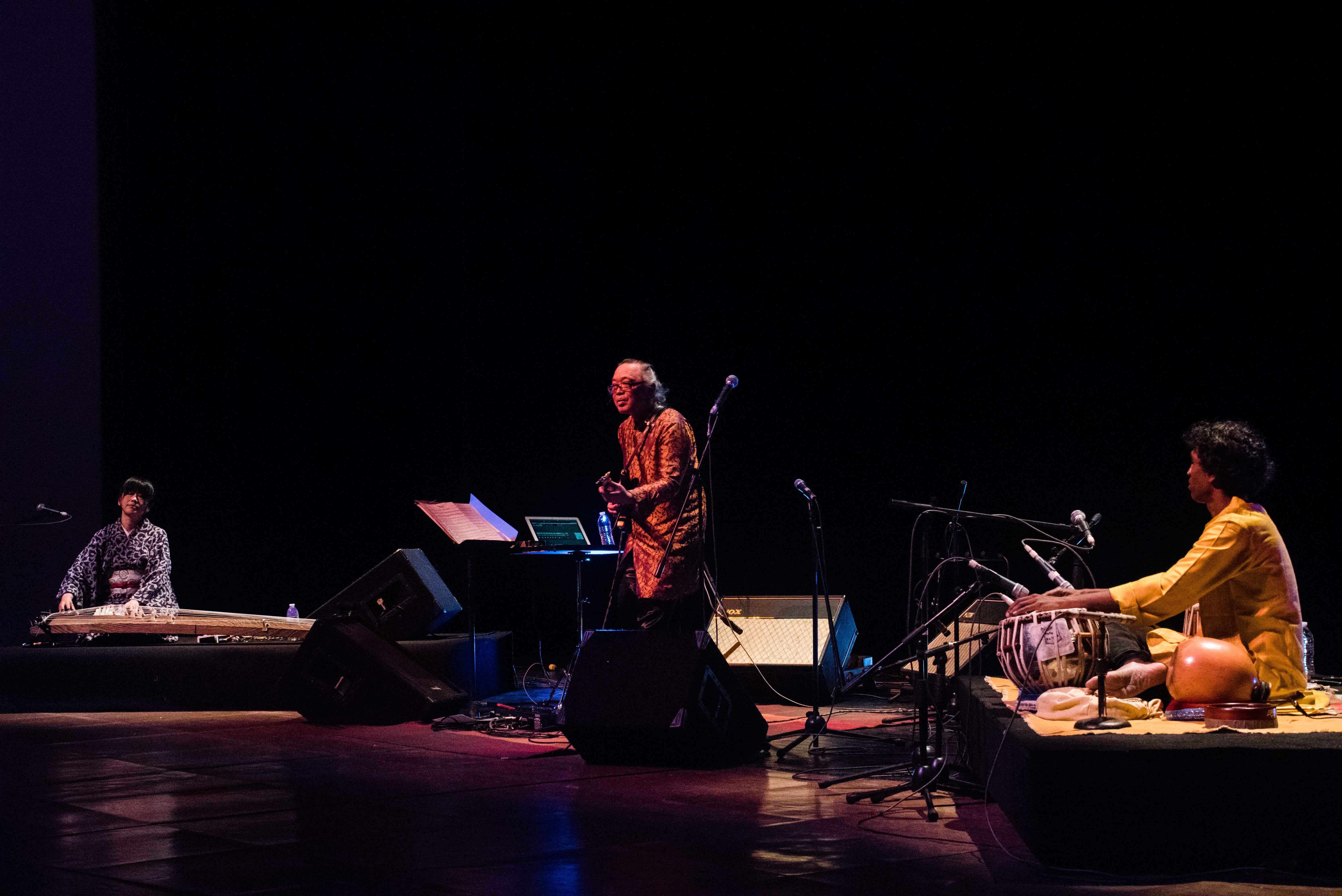 18032016-DSC_7950 Saiyuki es el nombre japonés de un libro que detalla el periplo de un monje chino del siglo XVI que viaja hasta la India en busca de los textos sagrados que compendian las enseñanzas de Buda. Y es precisamente eso lo que Mieko Miyazaki (koto), Prabhu Eduoard (percusión), y NGuyen-Le (guitarra/programación) brindan a su audiencia, si esta tiene la mente abierta y el oído atento para dejarse llevar en una travesía sonora que conecta a oriente y occidente, comenzando en el Japón imperial, pasando por el enigmático Vietnam y empleando a la India politeísta como eje articular.